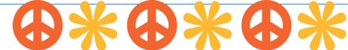 This decoration, coordinating with the Tie Dye Fun party theme, is 100' of nearly invisible "fishing line" string suspending alternating 4-inch-wide red peace sign and yellow flower diecut shapes. 1 per pack, 100 feet (30 m) in length.