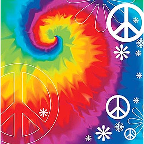 Tie Dye Beverage Napkins feature a vibrant colored retro design with flowers and peace symbols. These decorative cocktail napkins are constructed from standard 2ply tissue.
